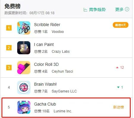 据GameLook报道,8月17日一款以Gacha为主题的手游进入美国免费榜Top5。游戏由地道的美国开发团队Lunime一手制作,游戏从画风、功能、玩法再到模式上,都有着浓郁的亚洲动漫风格。此前围绕Gacha这个独特的IP,Lunime公司已经开发出包含《Gacha Life》、《Gacha Studio》等在内的多款畅销游戏,因此本作在内容基调上,本部作品同样延续了同系列前作的基本原则,将可爱与战斗实现融合,让玩家在战斗的过程中也能感受到世界的不同。