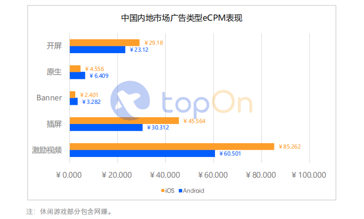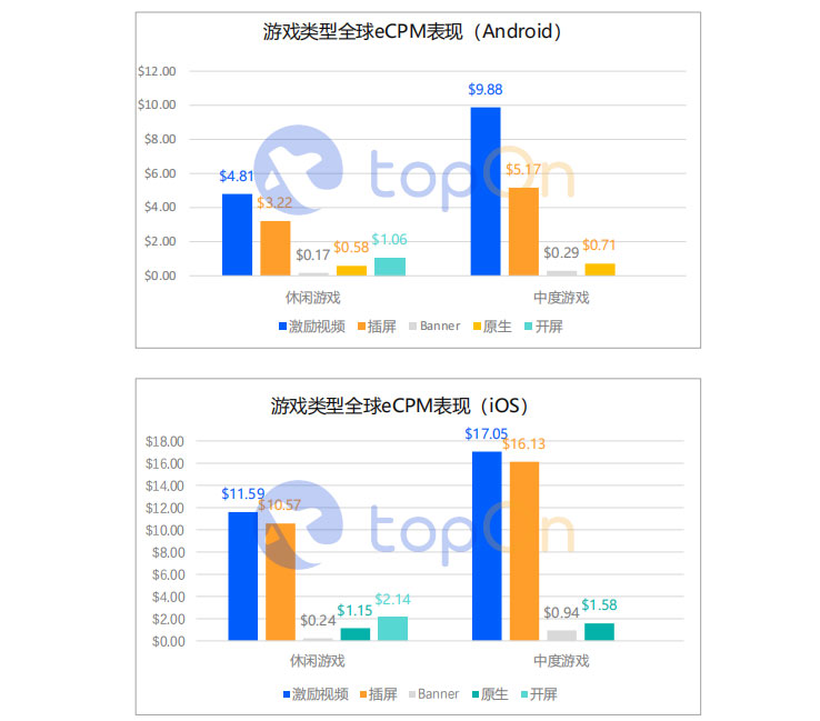 休闲游戏iOS端eCPM剧降,中重度游戏略有下滑。