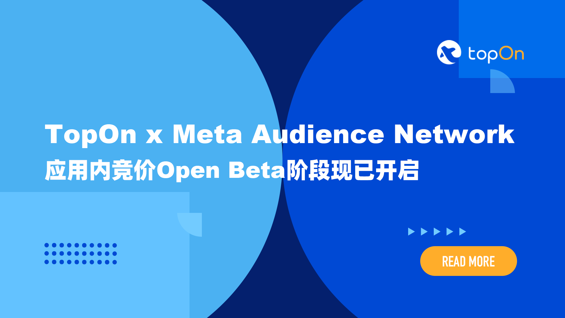 我们非常高兴的宣布TopOn与Meta Audience Network已经结束了封测阶段,正式进入公测并达成应用内竞价合作伙伴关系。随着Meta Audience Network得到更广泛的应用,开发者能够过直接通过TopOn聚合更便捷的使用Meta Audience Network竞价,无需手动请求。