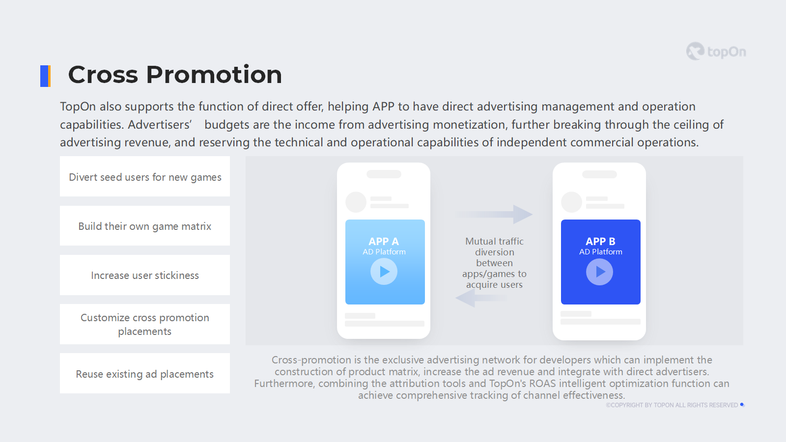 For developers looking to consolidate multi-app resources and enhance overall benefits, choosing a network that supports cross-promotion features would be a wise choice.