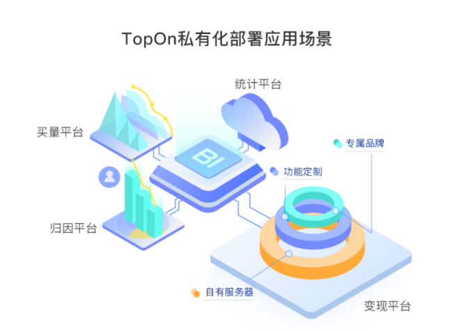 b. 借助私有化部署,TopOn的聚合变现功能及服务将直接安装到开发者服务器,产生的数据也会同步保存在开发者服务器,相当于开发者拥有自己的聚合变现工具,100%自主控制。