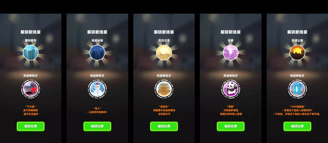 尽管游戏玩法简单,游戏难度却不低。随着关卡的不断提升,游戏会相应增加不同地图下的游戏难度,主要集中在地形障碍上,分别有木箱、石墩、雪人、下水道、龙卷风等特定障碍物,阻挡摩托车前进路线或遮挡玩家视野。