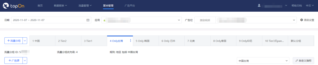 因不同地区广告价格、优势广告平台均不同,《Flipbike.io》针对重点投放区域全部单独分地区进行策略调优。不同地区根据量级大小设置不同的底价分层策略,如台湾地区某段时间内Admob表现强劲,相应调整用户广告展示导向。通过TopOn聚合工具可以根据实际的数据情况在后台实时作出调整,进一步确保收益达到最大化。
